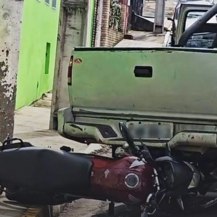 Caminhonete desce de ré na Rua Santa Rita e atinge moto estacionada após possível falha no freio