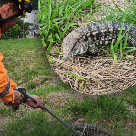 Maior espécie de lagarto do país é resgatada pelos bombeiros no bairro Ponte Nova, em Extrema