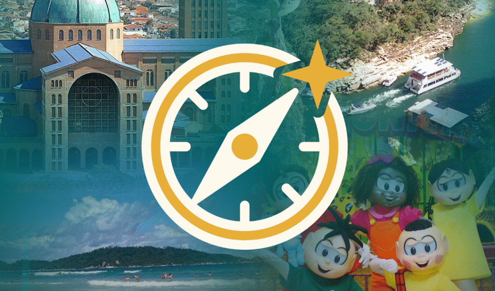Os cards de viagens incluem visitas ao zoológico, ao Parque da Mônica, a Capitólio e ao Santuário Nacional de Aparecida, além da oportunidade de conhecer belas praias, aproveitar um parque aquático e participar de grandes festas e eventos.
