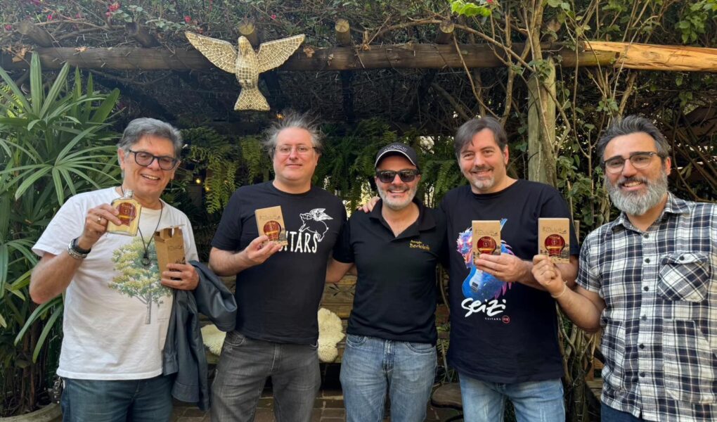 Por fim, os proprietários do restaurante presentearam os artistas com a cachaça clássica da casa Bertolotti, uma safra especial com 12 meses de maturação.