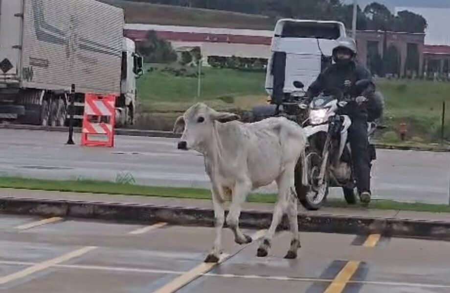 Na tarde desta última quarta-feira (11), vigilantes do Condomínio Logístico ‘BWDiase’ Business Park Extrema tiveram que interromper sua rotina de trabalho para dar atenção a um bezerro, que fugiu de um cercado e invadiu a área da portaria do centro logístico, chamando a atenção de todos que estavam no local.