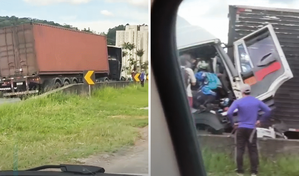 Na tarde desta terça-feira (16), uma colisão traseira entre duas carretas foi registrada na Rodovia Fernão Dias, no km 946,7 da BR-381/MG, em Extrema, no sentido Belo Horizonte.