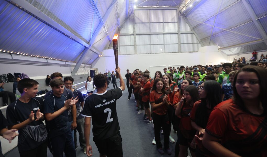 Acompanhados por gestores e professores, os estudantes-atletas das redes municipal, estadual e particular participaram do momento solene que deu início à competição, demonstrando muita energia, entusiasmo e espírito esportivo durante a entrada triunfal das delegações.