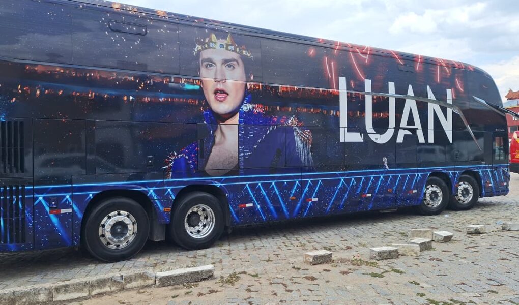O ônibus de Luan Santana, com sua imponente identidade visual da nova turnê, já está em Extrema e foi visto estacionado em frente ao Grupo Pururuca, onde possivelmente o cantor e sua equipe de produção se hospedarão durante a passagem pelo município.