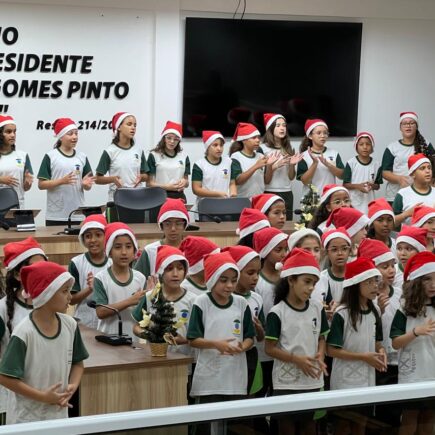 Alunos da EMETI Heili Mozar Simões emocionam equipes da Câmara de Vereadores com cantata natalina, incluindo canções em inglês e interpretação em Libras