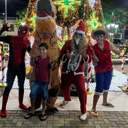 Irmãos da Popper TV roubam a cena com personagens icônicos e agitam crianças durante evento natalino em Extrema