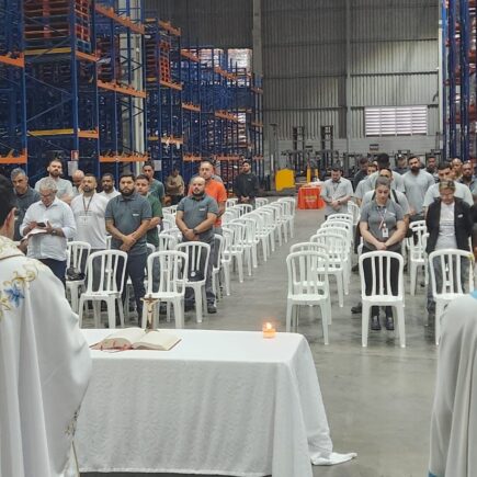 Padre Robson preside Santa Missa de Ação de Graças no Centro de Distribuição da Special Dog Company e leva palavra de fé aos funcionários
