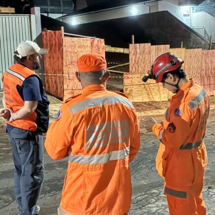 Muro desaba após fortes chuvas e moradores são retirados às pressas de imóvel com estrutura comprometida no Campos Olivotti