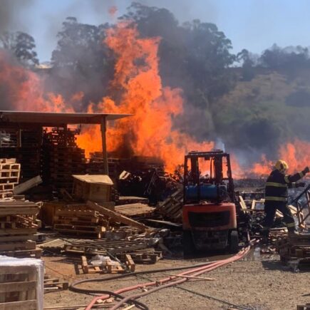 Incêndio de grande proporção atinge depósito de fábrica de paletes na Vila do Postinho e mobiliza Corpo de Bombeiro e Defesa Civil