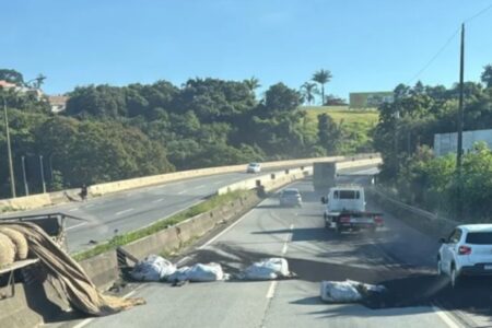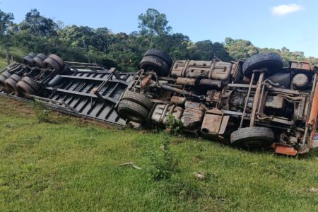 Tombamento de carreta causa congestionamento na Rodovia Fernão Dias em trecho entre Itapeva e Extrema logo no início da manhã