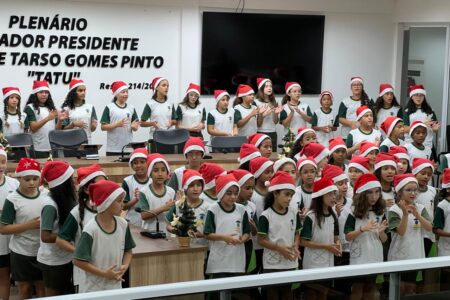 Alunos da EMETI Heili Mozar Simões emocionam equipes da Câmara de Vereadores com cantata natalina, incluindo canções em inglês e interpretação em Libras