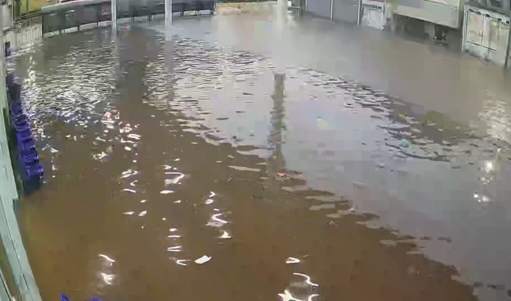A forte chuva que atingiu Extrema na madrugada desta terça-feira (13) causou alagamento no Terminal Rodoviário ‘Tei Kameya’, provocando transtornos temporários no funcionamento do local.