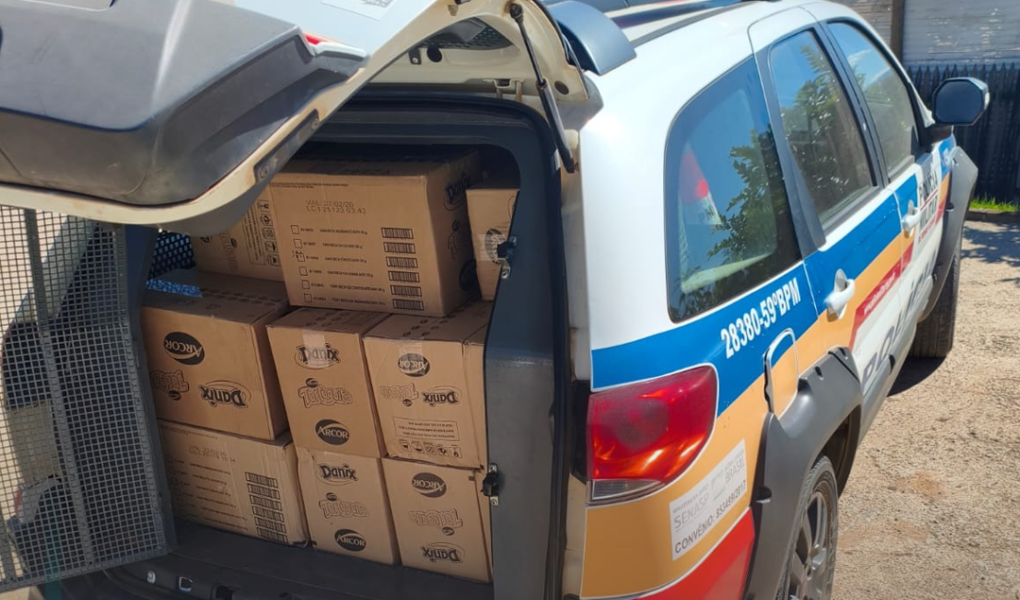Na ação, foram apreendidas ao todo mais de 100 caixas de biscoito Danix, dois aparelhos celulares, duas caixas com materiais elétricos diversos e um veículo utilizado na ação criminosa.